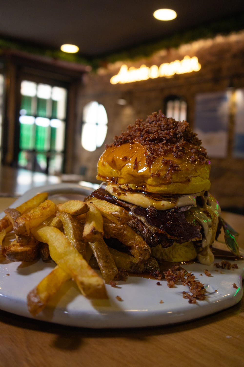 Una creación donde el crujido manda. Filete de pollo jugoso, rebozado en una mezcla única de panko japonés y Cornflakes, que aporta una textura dorada y un crunch irresistible. Se acompaña de un coleslaw cremoso y refrescante, cebolla finamente picada y pepinillos que equilibran el sabor con su punto ácido. Terminamos con nuestra salsa secreta Smash.