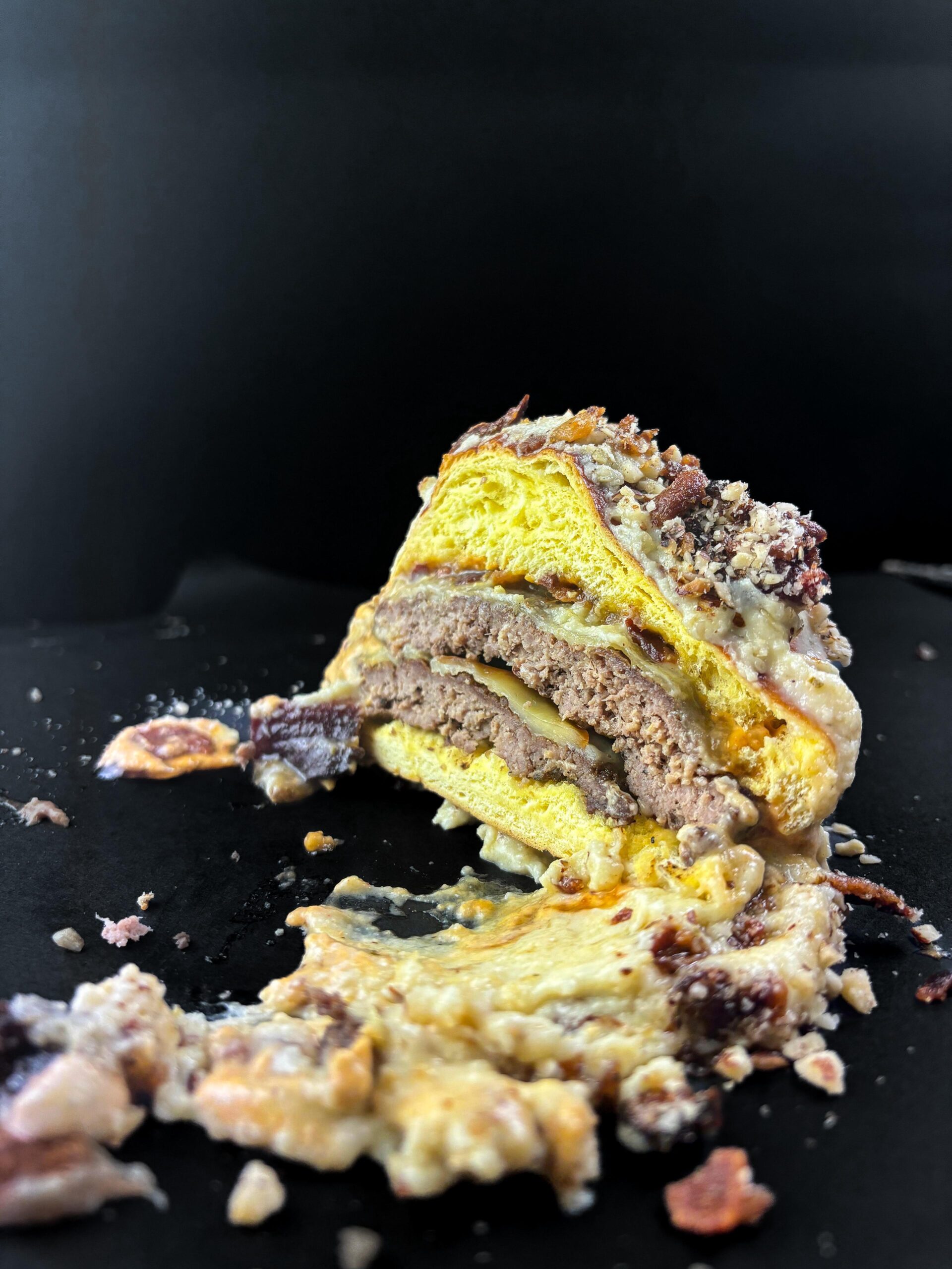 panceta, mayonesa de picadiellu, 0icadiellu, rellena y bañada en salsa de quesos asturianos,