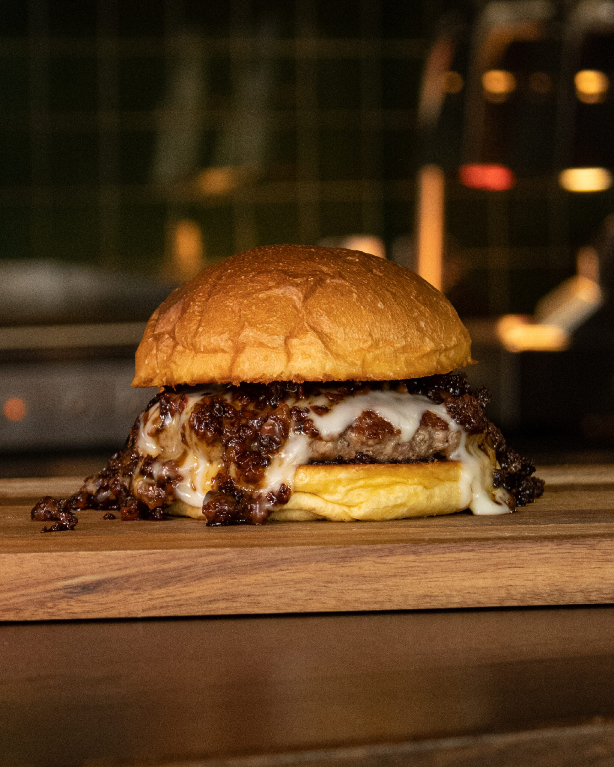 O Burger da Serra da Estrela é uma fusão entre tradição e técnica. Elaborado com 160g de carne Black Angus cuidadosamente grelhada, traz como protagonista o queijo de cabra da Serra da Estrela, um ícone da gastronomia portuguesa reconhecido pelo seu sabor intenso e personalidade marcante. Para equilibrar a sua força, o bacon é caramelizado no melaço de cana, criando um contraste agridoce que realça cada camada de sabor. Servido num pão brioche de leite.