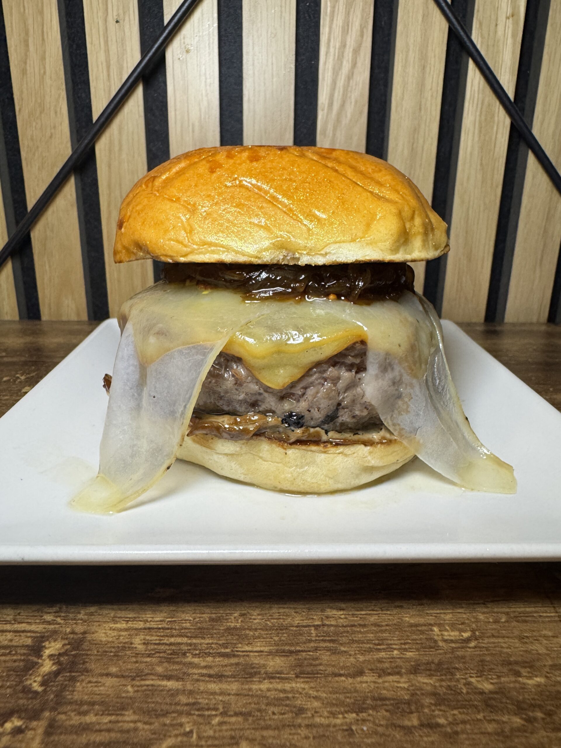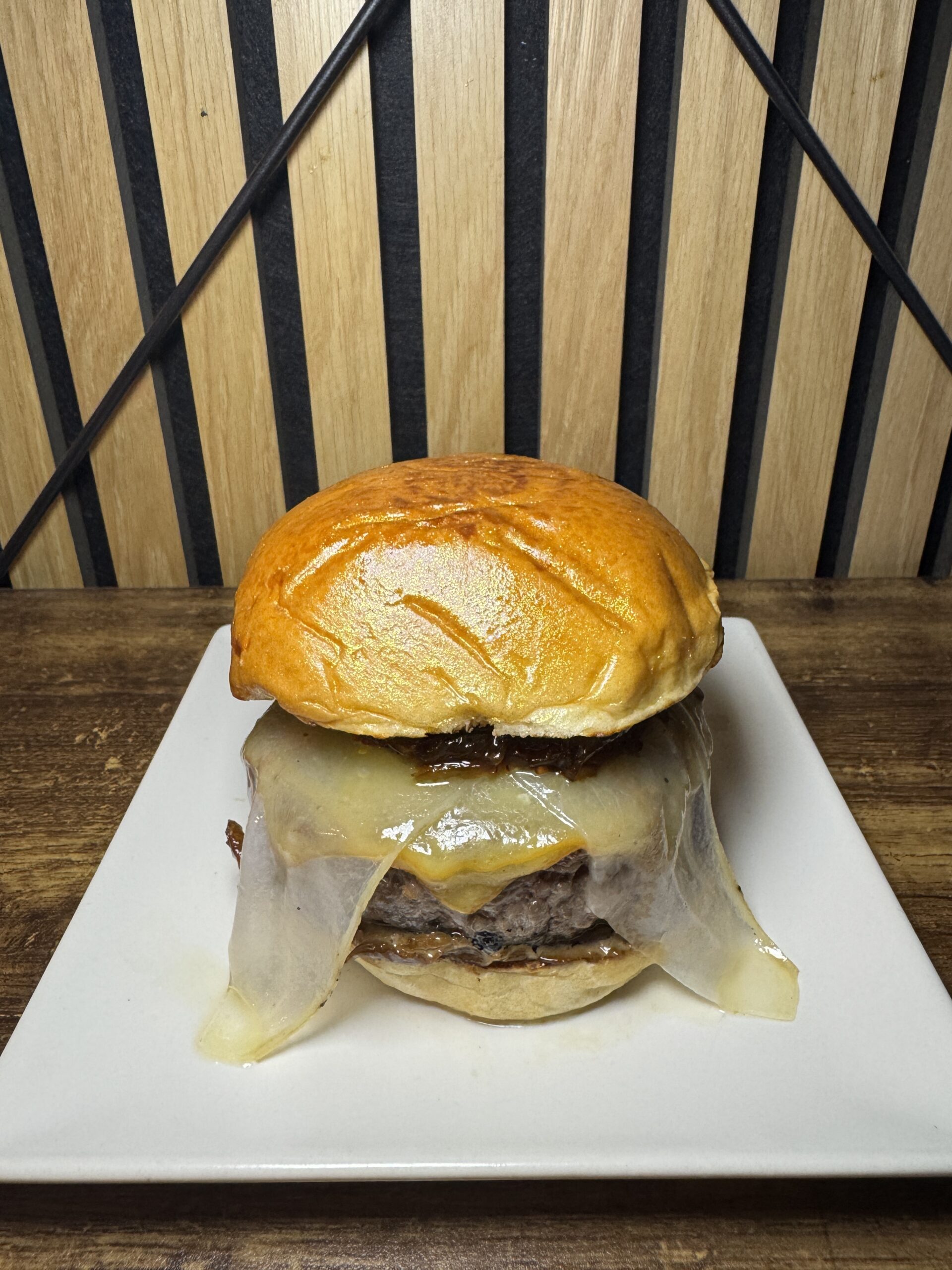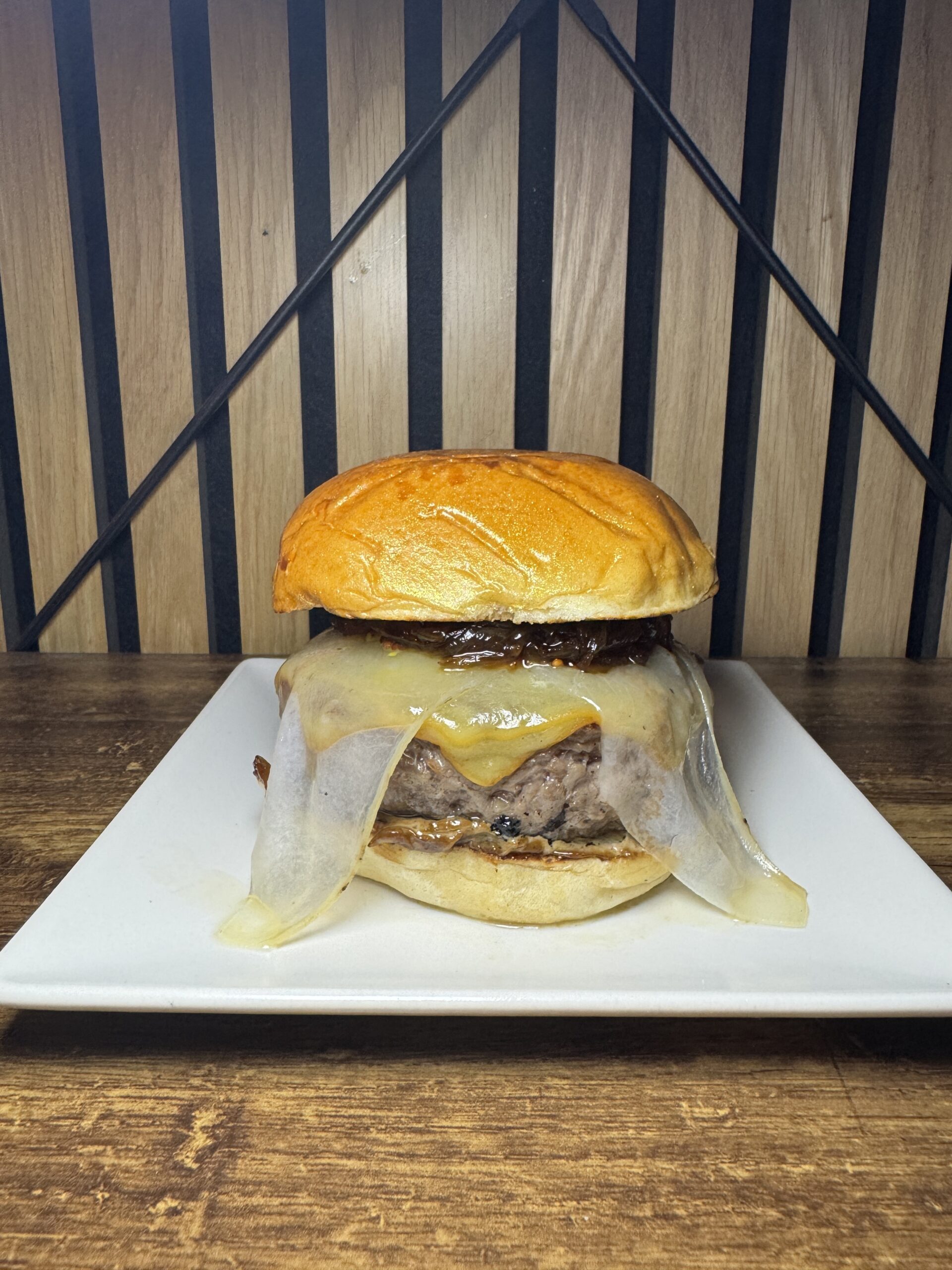 Entre los suaves panes brioche de Juanito Baker, se esconde un blend exclusivo de vaca rubia madurada 30 días, jugoso, intenso y lleno de matices.