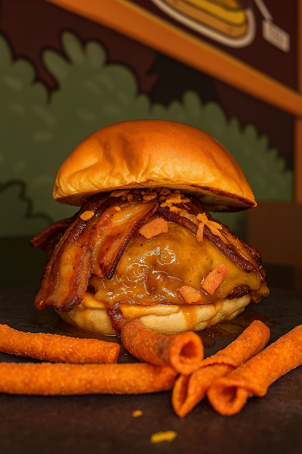 El contraste lo pone una capa de Taki crocante, que aporta ese punto picante y adictivo que sorprenderá a tu paladar junto al bacon crujiente ahumado que equilibra todo el conjunto.